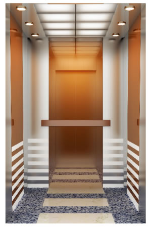 轿壁:钛金发纹不锈钢、夹镜面横条不锈钢蚀刻
